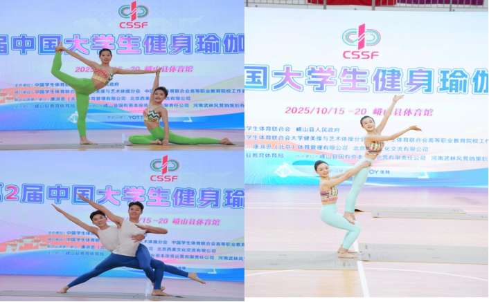 10月15日-10月20日,我校健身瑜伽代表队参加了第二届中国大学生健身瑜伽锦标赛。本次比赛由中国大学生体育联合会、峨山县人民政府主办,峨山县教育体育局承办。本次赛事汇聚北京大学,中国地质大学,首都师范大学等52所高校的576名运动健儿同台竞技,共同演绎了一场力与美交织的青春体育盛会 。